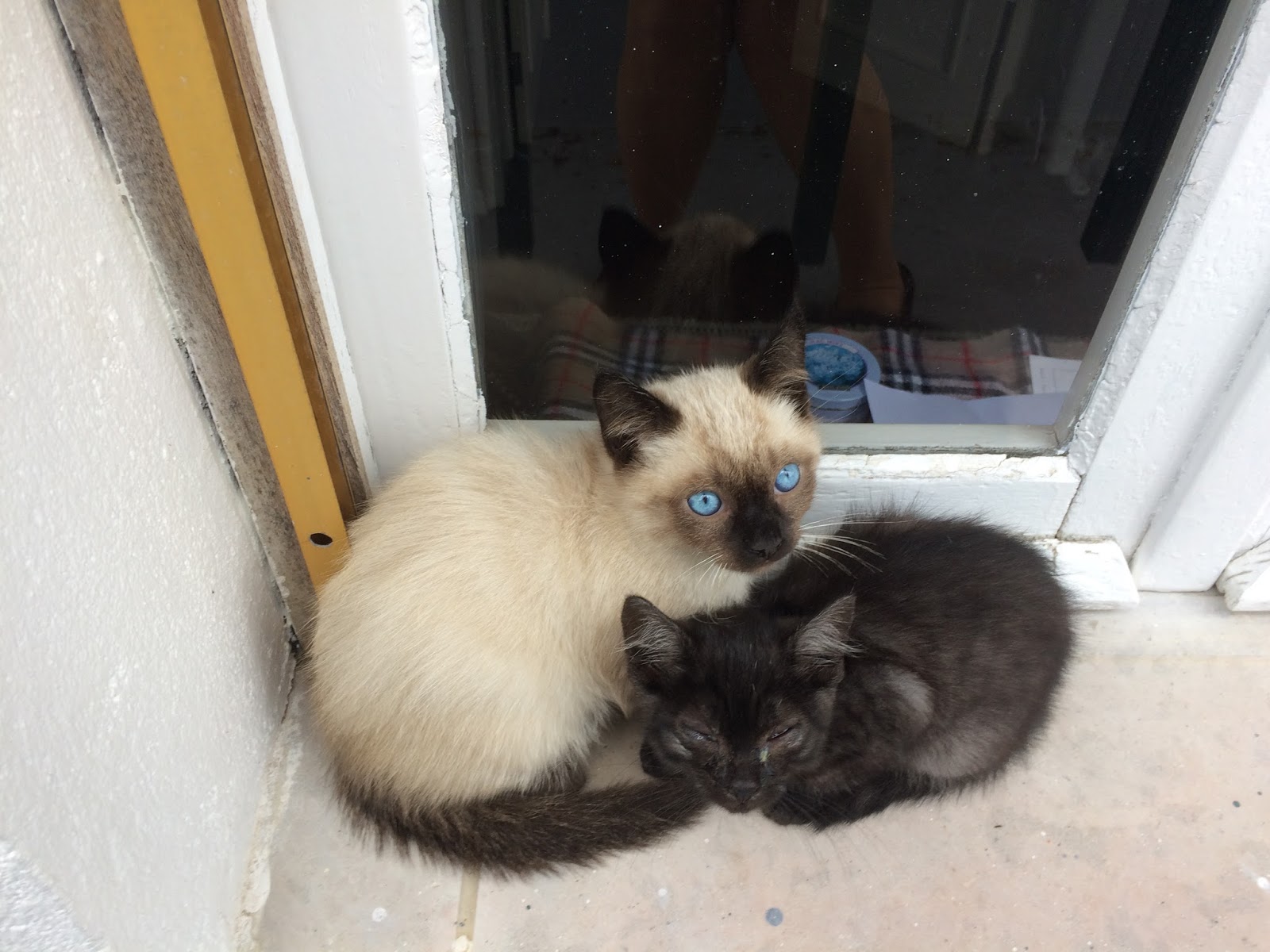 A Rosita – uma gata preta luzidia e esperta como um alho, que entra cá em casa quase sem darmos por isso – teve uma ninhada há uns três meses e dois deles: um belo siamês de olhos bem azuis, grande e comilão – o maior da ninhada – e uma gatinha quase preta, com leves riscas cinzentas antracite e olhos bem verdes, a mais pequenina da ninhada, não saem aqui do meu quintal. Por muito que eu os carregue ao colo, desde a mais tenra idade, para o jardim da vizinha, eles voltam para cá quase ato contínuo. As outras irmãs (felizmente) não adotaram o meu espaço, mas estes dois, inseparáveis, não me perdem de vista. Um preto e um branco.